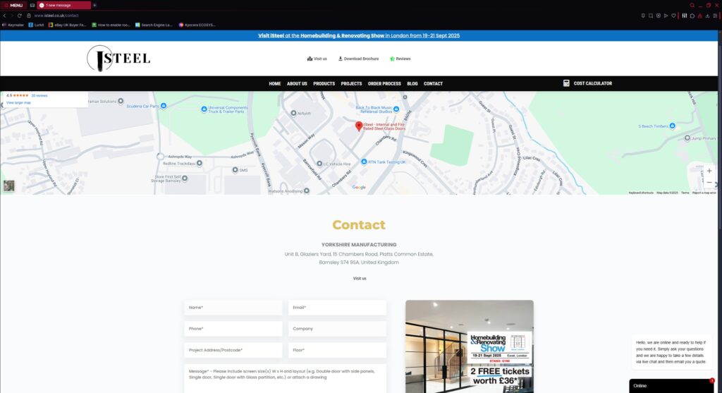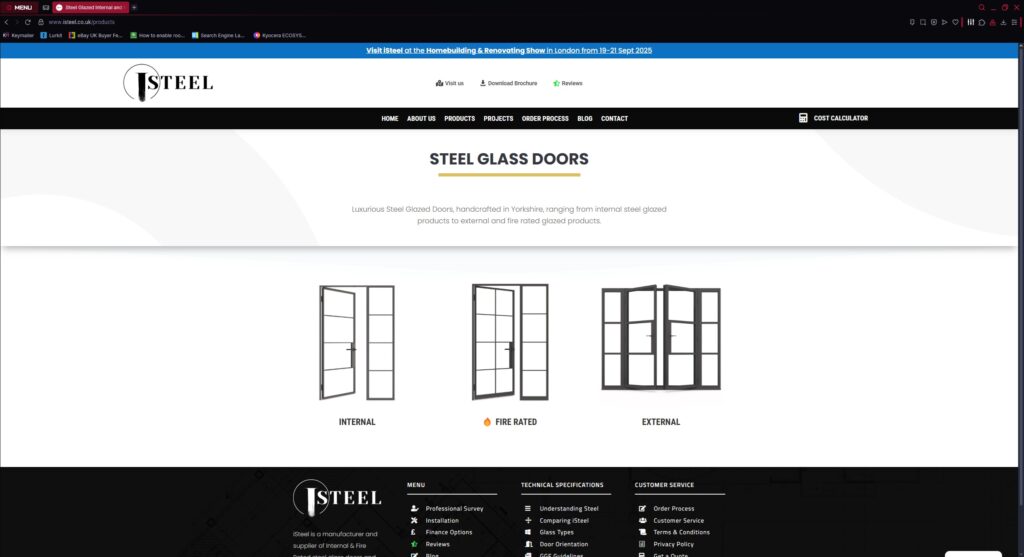 iSteel designs and fabricates luxurious steel glass doors from their factory based in Barnsley, South Yorkshire. iSteel is a sister company of Glass Walls and Doors, an experienced team that has been designing and installing glass partitioning for many years, with literally thousands of happy clients throughout the United Kingdom.