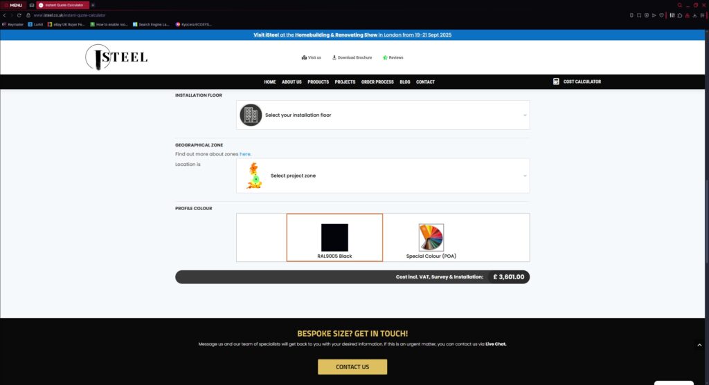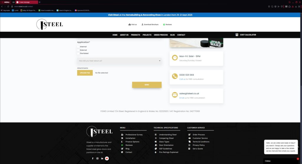 “Create a business website to showcase our products, case studies, contact page and a bespoke glass partition cost calculator.“