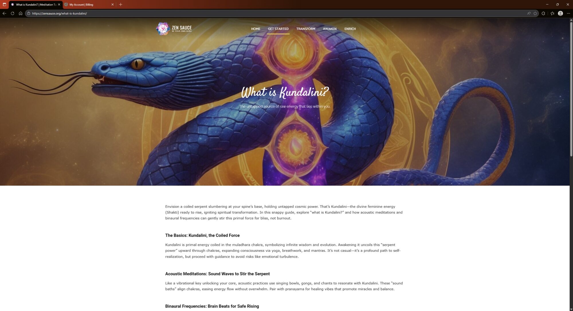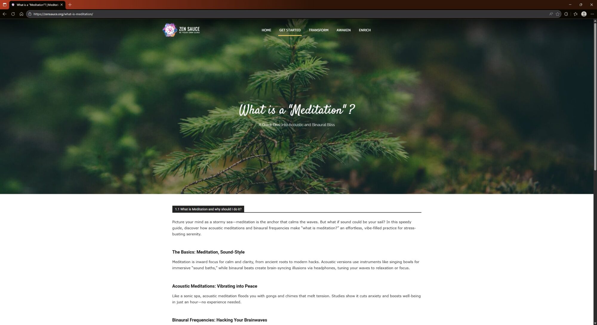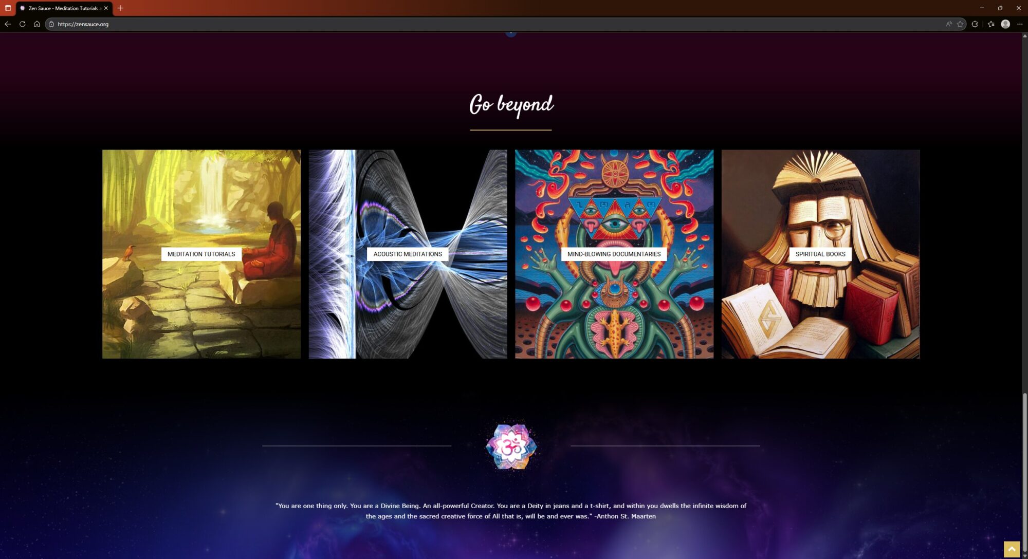 Zensauce.org is a spiritual and wellness-oriented website that serves as a curated library for meditation, consciousness and personal transformation. Its central tagline is “Be Your Own Guru.”The site focuses on providing resources for people looking to explore “alternative” worldviews, spiritual practices and mindfulness.